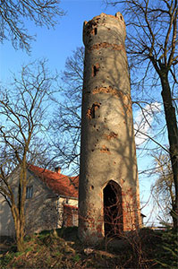 Es ist wohl im Jahr 1914 gewesen, als auch im Kreis Tczew ein Turm errichtet wurde, dessen Funktion nur in dem berauschenden Gefühl nationaler Erhabenheit bestanden haben dürfte. Für den Fürsten von Bismarck persönlich kam dieser Turm deutlich zu spät. Und zu Lebzeiten hätte er auch wahrscheinlich kaum hineingepaßt. Hätte er es jedoch geschafft, den Eingsng zu bezwingen, so wäre er kaum wieder hinausgekommen, nicht ohne den Säbel abzulegen, mit dem er sich meist ablichten ließ.