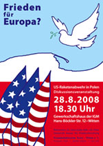 Die Veranstaltung über die US-Raketenavwehr am letzen Donnerstag fand im Gewerkschaftshaus der IG-Metall statt. Zuerst bot der Freundschaftsverein Tczew - Witten einige Informationen über die polnische Partnerstadt Tczew, die Arbeit des Vereins und die Reisen nach Polen, bevor die beiden eingeladenen Politikwissenschaftler ihre Stellungnahmen zum Thema des Abends gaben.