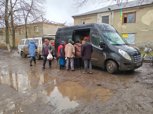 Verteilung von Hilfsgütern in der Region Bachmut in Chasiv Yar.